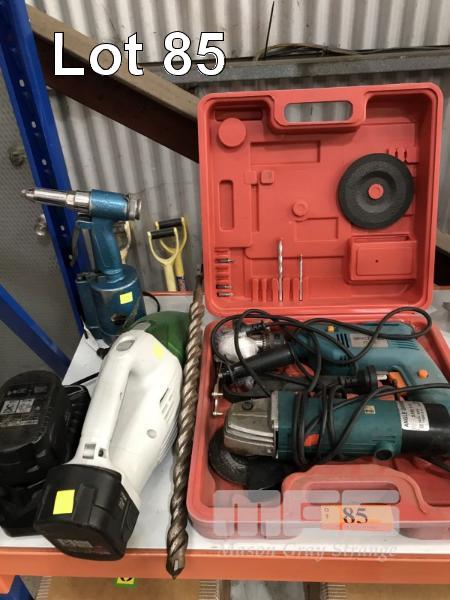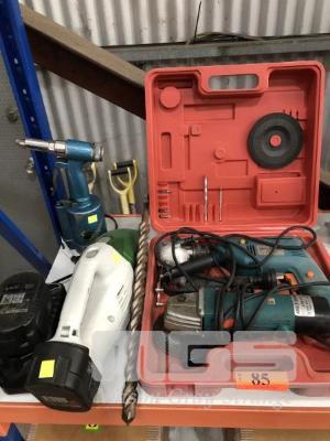 PNEUMATIC RIVETER, SCORPION, HITACHI 18V HAND VAC WITH 2 x BATTERIES, CHARGER & BOSCH 25mm SDS MASONRY DRILL BIT
