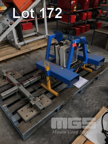 VACUUM LIFTING JIB, VACLIFT MOD: FVL1000T S/NO: 046 DOM: 2/12 WLL: 1,000kg HORIZONTAL TO VERTICAL MATERIAL HANDLING 6 POINT SUCTION FORK POCKETS 5 x LOAD CENTERING SHACKLE POINTS PENDANT CONTROL 230 x 130cm 240V BATTERY RECHARGE