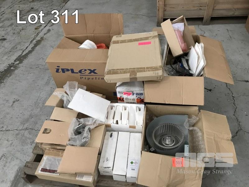 ASSORTED A/C & WATER HEATER PARTS, FANS, REGULATORS, CERAMICS, TRENCH TAPE, ETC, 1 x PALLET