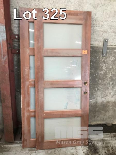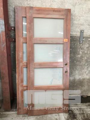 PAIR TIMBER FRAMED GLASSED EXTERNAL DOORS, SALVAGE, 82 x 203cm
