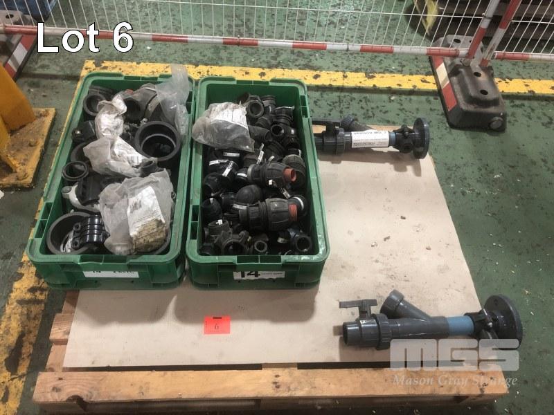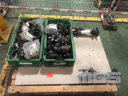 LARGE QUANTITY NYLON PIPE FITTINGS, INCLUDES COUPLERS, ELBOWS, ADAPTORS & CLAMPS