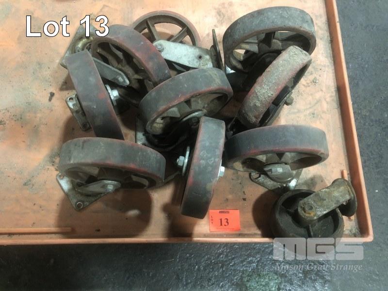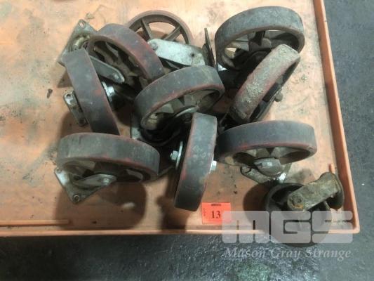 8 x SWIVEL RED NYLON CASTORS, 200mm
