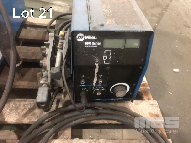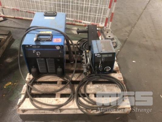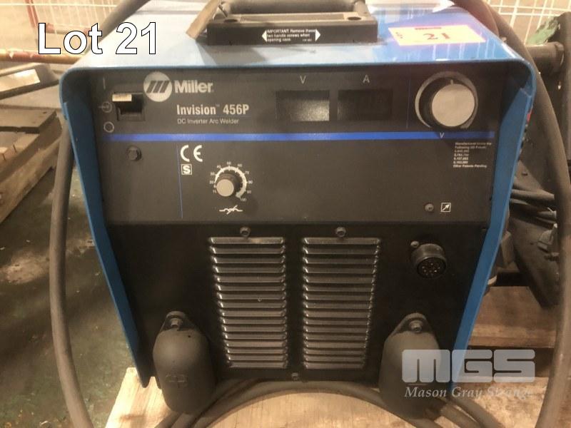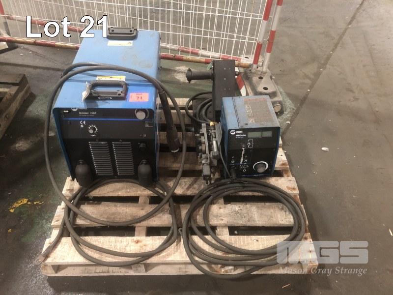 INDUSTRIAL MILLER MIG WELDER COMPRISING MILLER INVISION, 456P POWER SUPPLY WITH MILLER 60M SERIES 24V WIRE FEED