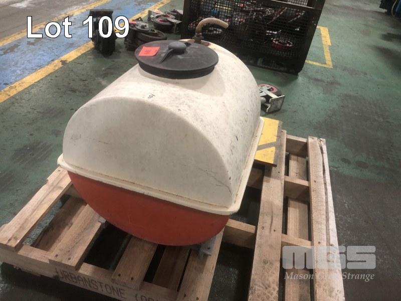 POLY TANK, APPROX 40 LITRE ON GALV BASE