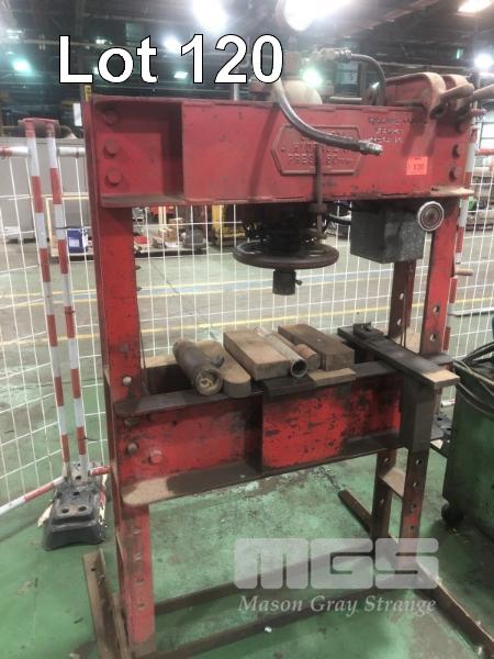 SERVEX 60T HYDRAULIC SHOP PRESS WITH POWER PACK, 415V RISE & FALL TABLE ON WINCH 1000mm BC ASSORTED DIES & PLATES