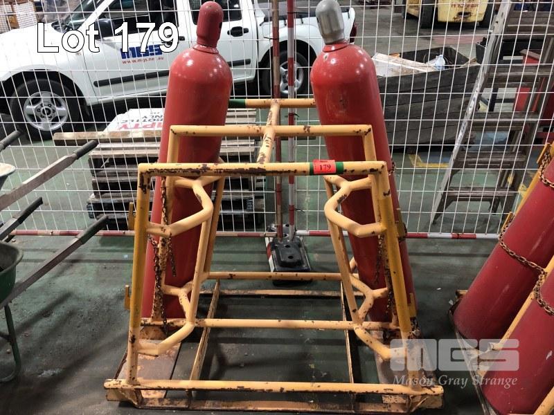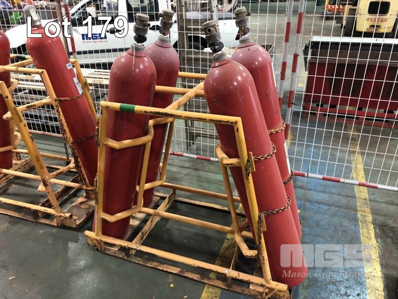 6 x FIRE RETARDANT CARBON DIOXIDE CYLINDERS & 2 x CARRY RACKS
