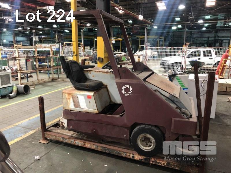 RIDE ON SWEEPER, POWER BOSS MOD: SW/62/10 S/NO: 7619035 250kg 3 CYLINDER RUNS / DRIVES OK . HAS LEAKY HYDRALIC HOSE. DIESEL WATER COOLED ALL FAULTS