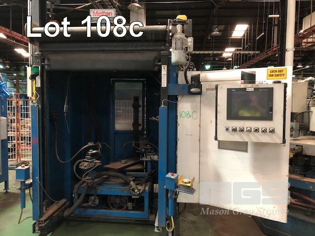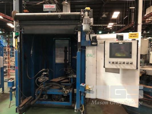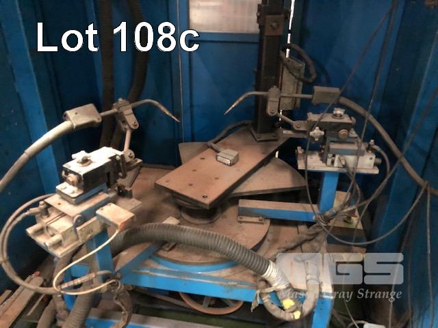 WELDING ENCLOSURE, ROTATING BASE. DUAL MIG WELDING GUNS, SCHNEIDER MAGELIS COMPACT IPC TOUCH SCREEN SCHMESAL INFRA RED SAFETY BEAMS, RISE & FALL POWERED CURTAIN, REAR DOOR ACCESS, E-STOP & AIR CONTROLS