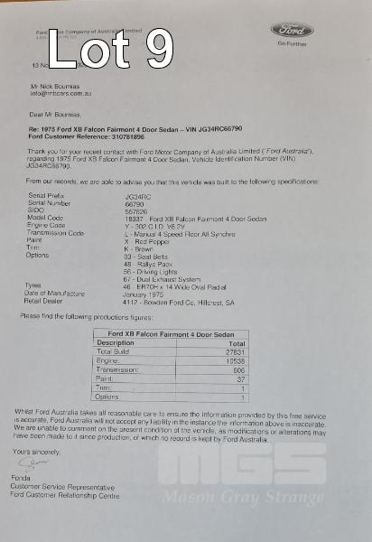 1975 FORD XB FAIRMONT GS SEDAN ODO: UNKNOWN RED PEPPER DUCO, RWD FORD 351 CLEVELAND V8 ENGINE (FACTORY WITH 302 WINDSOR V8) 3 SPEED FLOOR SHIFT AUTOMATIC (FACTORY WITH 4 SPEED) COMPLETE FULL RESTORATION REQUIRED, RUNNING & ROLLING - WALK IN REGO