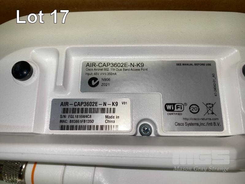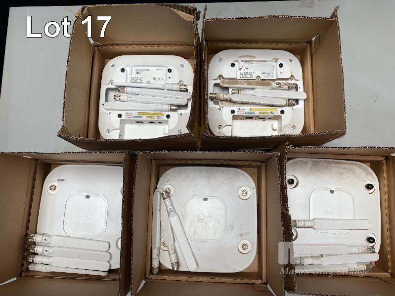 5 x CISCO AIRONET 3600 SERIES WIRELESS ACCESS POINTS, AIR-CAP3602E-N-K9 WITH ANTENNAS (1 x MISSING)