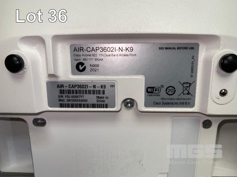 6 x CISCO AIRONET 3600 SERIES WIRELESS ACCESS POINTS, AIR-CAP3602I-N-K9 (POWER SUPPLIES NOT INCLUDED)