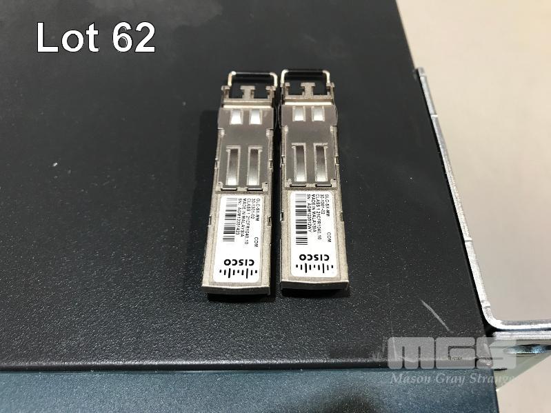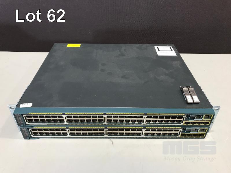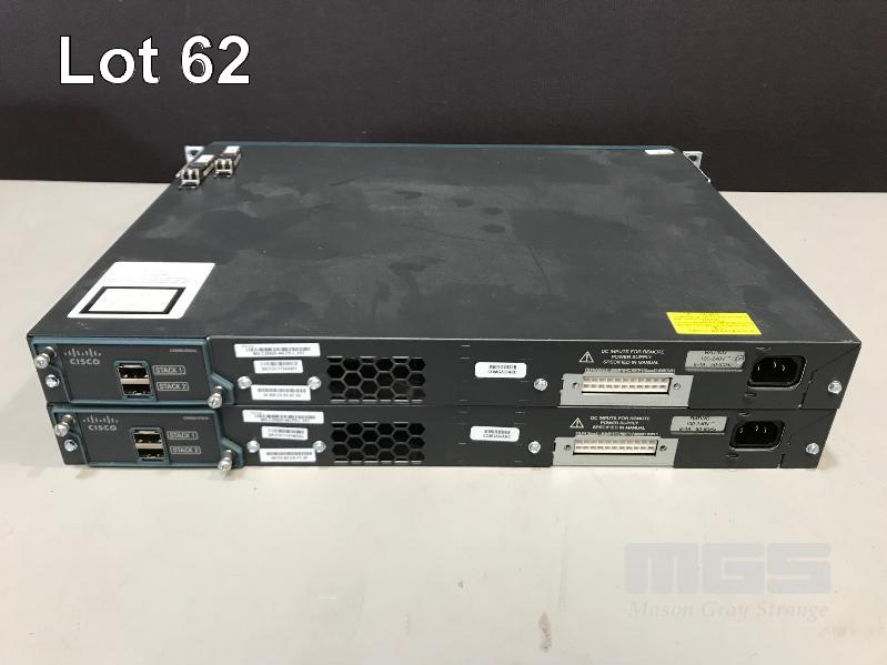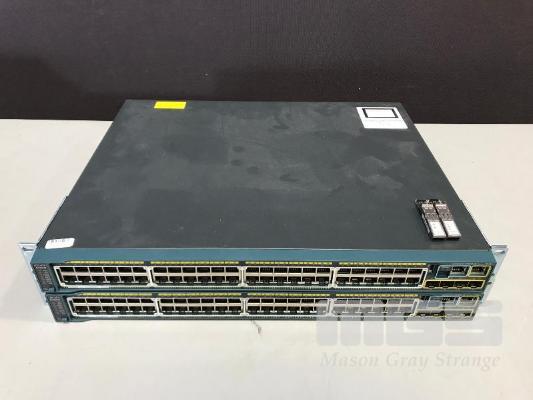 2 x CISCO CATALYST 2960-S SERIES PoE+ 48-PORT SWITCHES, WS-C2960S-48LPS-L V03 WITH C2960S-STACK MODULES & 2 x GLC-SX-MM SFP TRANSCEIVER MODULES (NO CABLES) S/N:FOC1704X403, FOC1701W35U