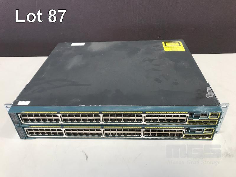 2 x CISCO CATALYST 2960-S SERIES PoE+ 48-PORT SWITCHES, WS-C2960S-48LPS-L V02 WITH C2960S-STACK MODULES (NO CABLES) S/N:FOC1442Z6W4, FOC1442Z6V5