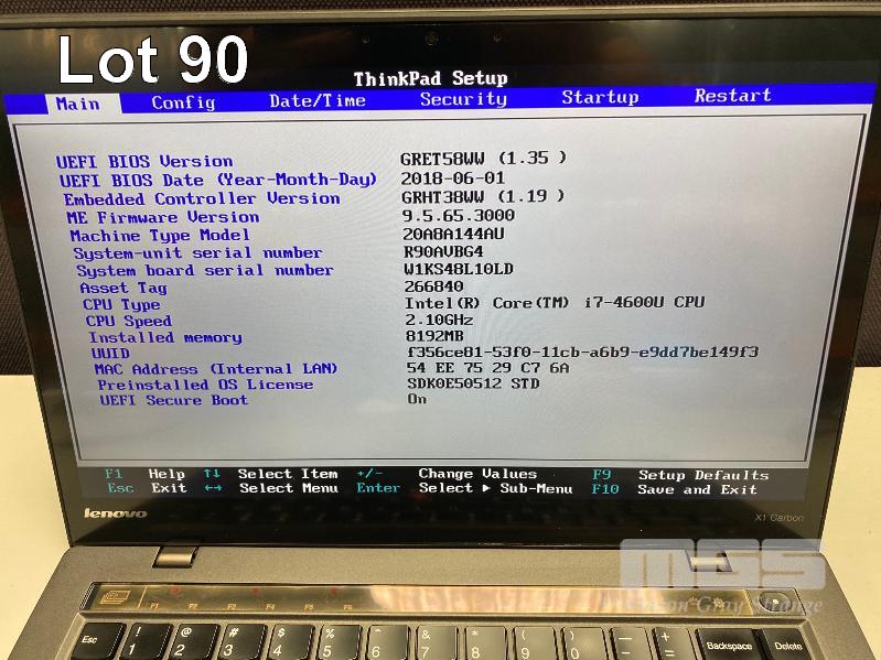 LAPTOP, LENOVO THINKPAD X1 CARBON (20A8A144AU), CORE i7 4600U (4TH GEN) @ 2.1GHz, 8GB DDR3 RAM, 256GB SSD, 14" TOUCHSCREEN (2560x1440), INTEL HD VIDEO, Wi-Fi, CELLULAR (N5321GW), BLUETOOTH, WINDOWS 10 HOME INSTALLED, ONELINK PRO DOCK, POWER SUPPLY & CARRY BAG S/N:R90AVBG4