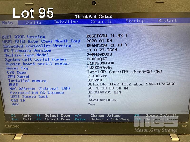 LAPTOP / ULTRABOOK, LENOVO THINKPAD T460 (20FMS0KV03), CORE i5 6300U (6TH GEN) @ 2.4GHz, 8GB DDR3 RAM, 500GB SATA HDD, 14" WIDESCREEN (1366x768), INTEL HD VIDEO, Wi-Fi, BLUETOOTH, WINDOWS 10 PRO INSTALLED & POWER SUPPLY (NOTE: SOME KEYS FADED) S/N:PC0CAQHZ
