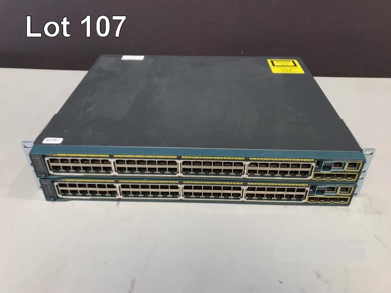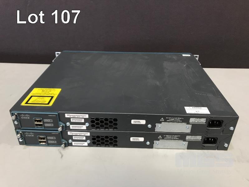2 x CISCO CATALYST 2960-S SERIES PoE+ 48-PORT SWITCHES, WS-C2960S-48LPS-L V02 WITH C2960S-STACK MODULES (NO CABLES) S/N:FOC1442Z6UD, FOC1442Z6UK