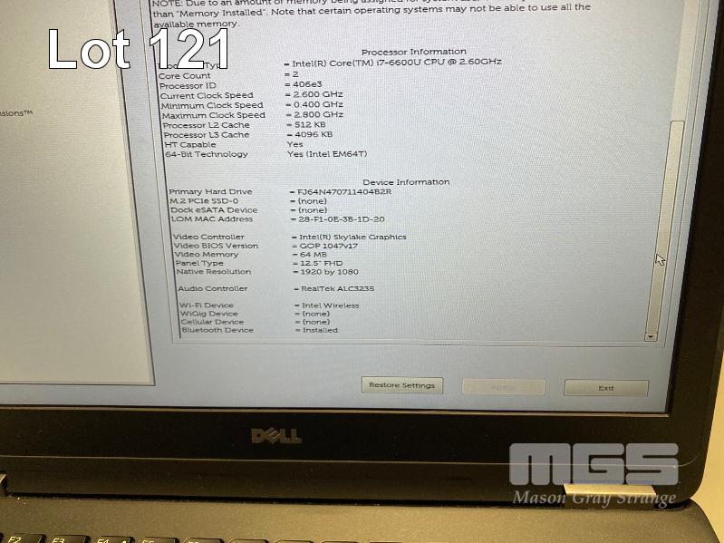 LAPTOP / ULTRABOOK, DELL LATITUDE E7270, CORE i7 6600U (6TH GEN) @ 2.6GHz, 8GB DDR4 RAM, 256GB SSD, 12.5" WIDESCREEN (1920x1080), INTEL HD VIDEO, Wi-Fi, BLUETOOTH, WINDOWS 10 HOME INSTALLED & POWER SUPPLY (NOTE: NO BATTERY) S/N:C40QMC2