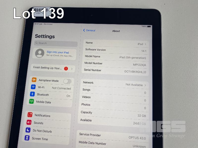 APPLE iPAD 5TH GEN, 9.7", 32GB, Wi-Fi, CELLULAR, SPACE GREY, MODEL A1823 (NO CHARGER, NO CABLE) (NOTE: DAMAGE NEAR BOTTOM RH CORNER AREA) S/N:GCTV8KRGHLJJ
