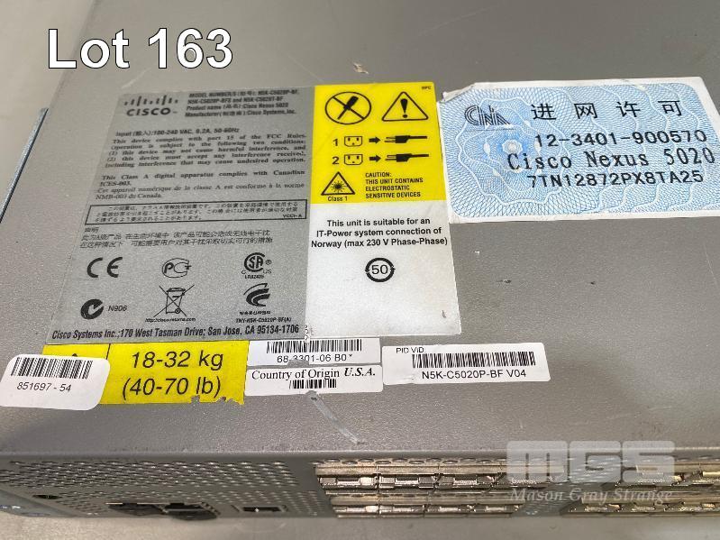 CISCO NEXUS 5020 40-PORT FIBRE CHANNEL OVER ETHERNET (FCoE) SWITCH, N5K-C5020P-BF V04 2 x FIBRE CHANNEL MODULES, N5K-M1060 2 x POWER SUPPLIES, N5K-PAC-750W