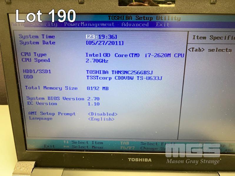 LAPTOP, TOSHIBA TECRA R840 (PT429A-016004), CORE i7 2620M (2ND GEN) @ 2.7GHz, 8GB DDR3 RAM, 256GB SSD, DVD-RW, 14" WIDESCREEN (1600x900), 1GB AMD RADEON HD 6450M VIDEO, Wi-Fi, BLUETOOTH, WINDOWS 7 PRO INSTALLED W/ LICENSE, DOCKING STATION, KEYBOARD, MOUSE, POWER SUPPLY & CARRY BAG S/N:6B031258H