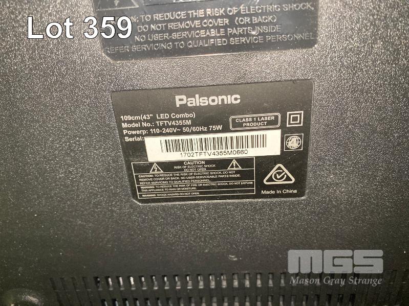 TV, PALSONIC TFTV4355M 43" LED LCD COMBO, WITH REMOTE (NO STAND) S/N:1702TFTV4355M0660