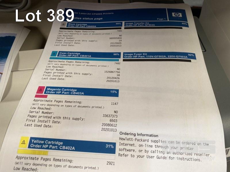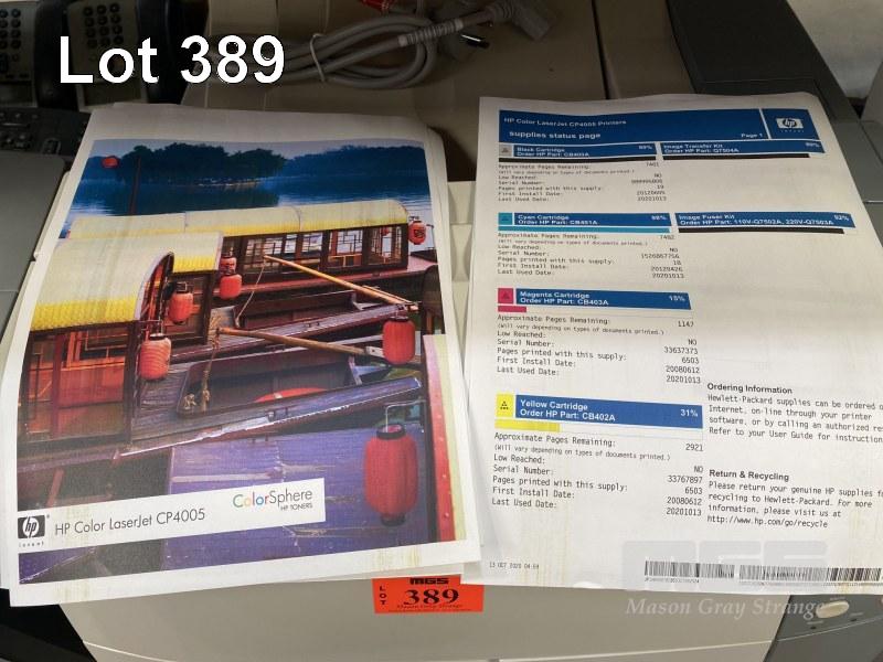 PRINTER, HP COLOUR LASERJET CP4005n, USB, NETWORK, 11,176 PAGES (TEST PAGE ATTACHED - POOR) S/N:JP1NB45078