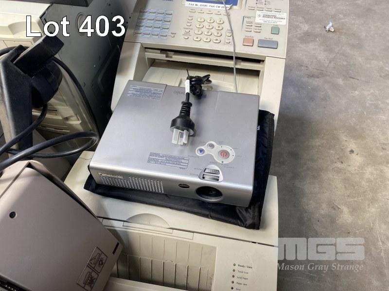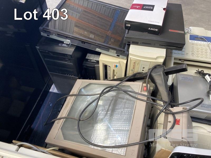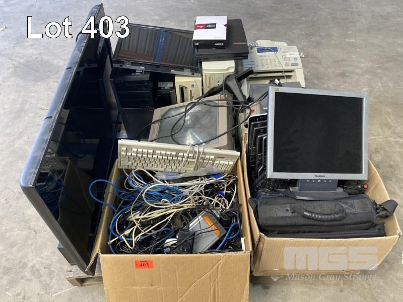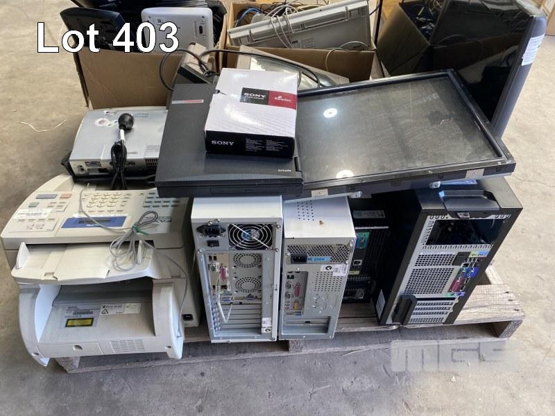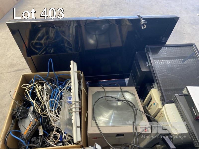 1 x PALLET LOT ASST FAULTY / INCOMPLETE COMPUTERS, CABLES, OVERHEAD PROJECTOR, DATA PROJECTOR, FAX MACHINE, FAULTY VIVO TV, BAGS, KEYBOARDS ETC