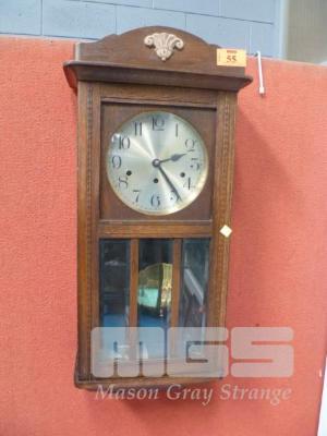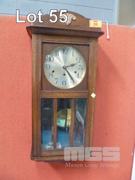 OAK CASED PEDULUM WALL CLOCK WITH WESTMINSTER CHIME & KEY