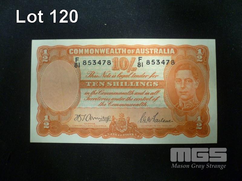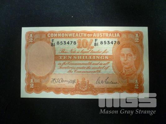 1942 10 SHILLING NOTE ARMITAGE MCFARLANE PCGS HIGH GRADE