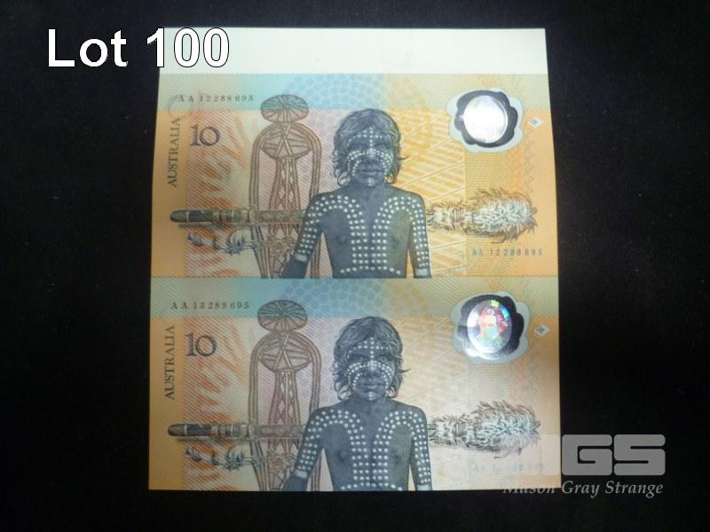 1988 UNCUT COMMEMORATIVE PAIR OF $10.00 NOTE JOHNSTON FRAZER UNC