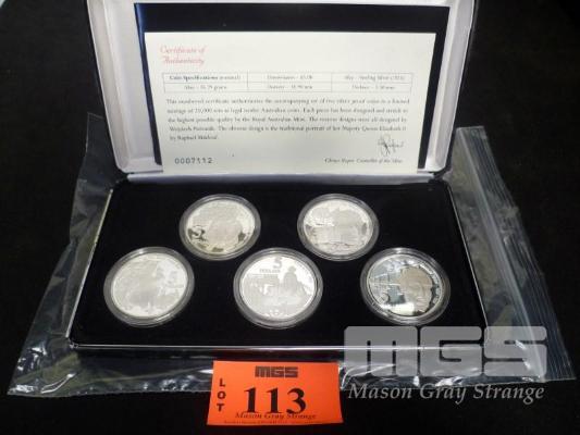 1995 MASTERPIECES IN SILVER, 5 x 35.79gm STERLING SILVER COINS (169gms)