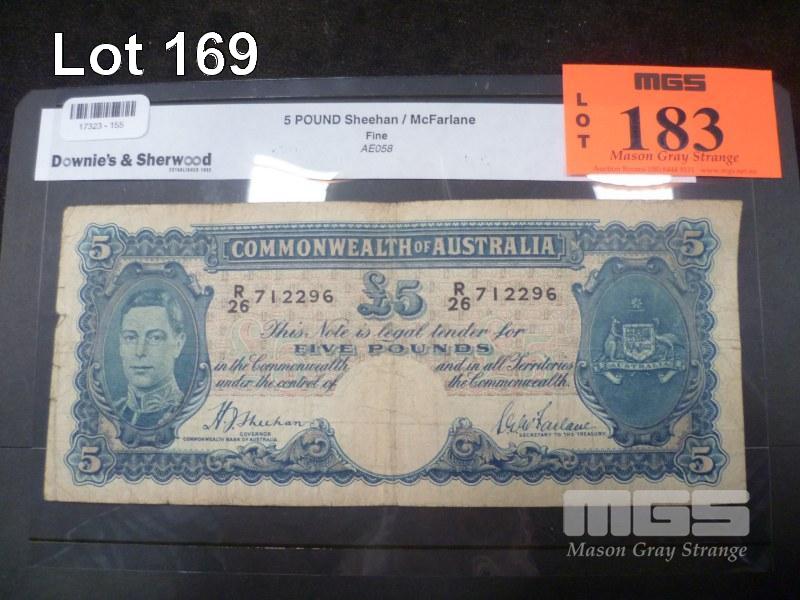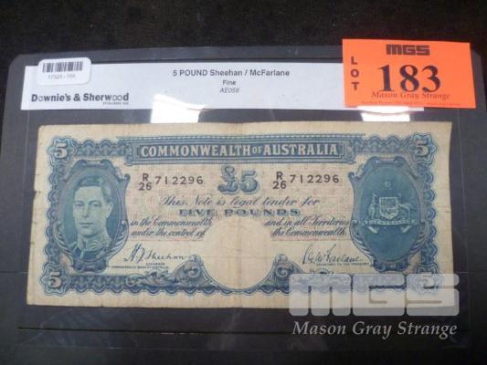 COMMONWEALTH OF AUSTRALIA, FIVE POUNDS, BANKNOTE, SHEEHAN/McFARLANE, R26 712296 FINE