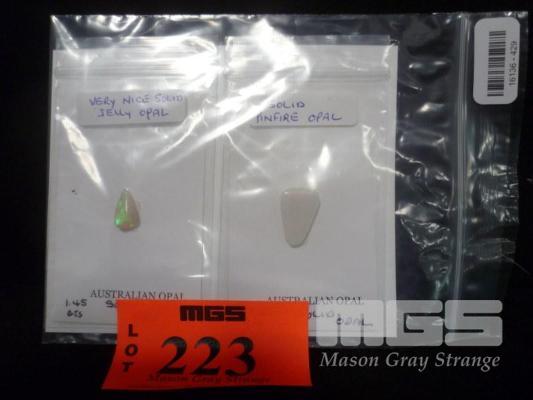 1 X SOLID JELLY OPAL, 1.45 cts & 1 X SOLID PINFIRE OPAL, 3.75 cts
