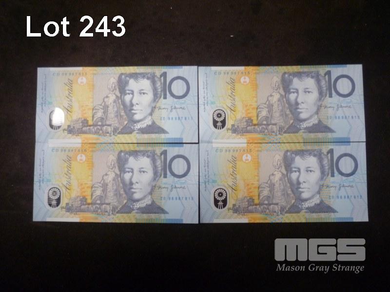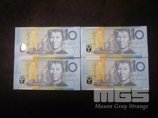 4 X CONSECUTIVE, AUSTRALIA, $10 POLYMER BANKNOTES, EVANS/MACFARLANE, CD 98987810-813 UNC
