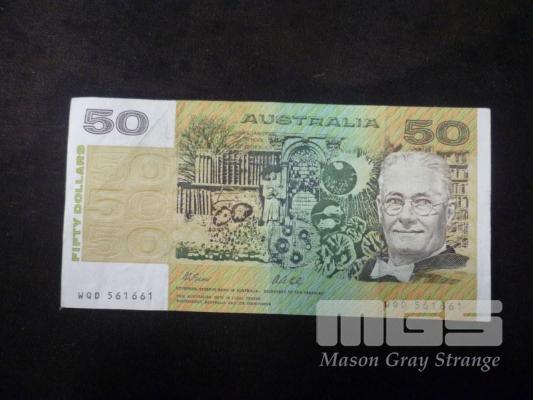 AUSTRALIA, $50 PAPER BANKNOTE, FRASER/COLE, WQD 561661