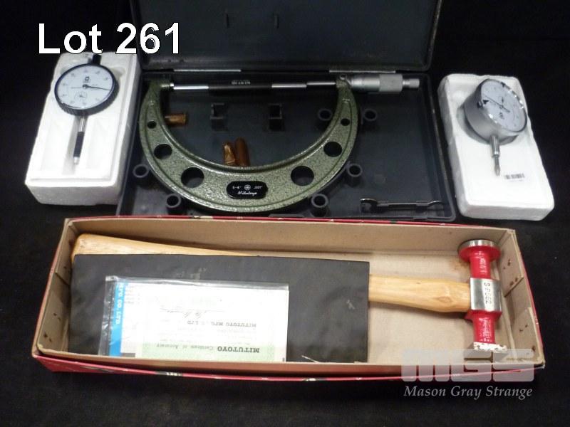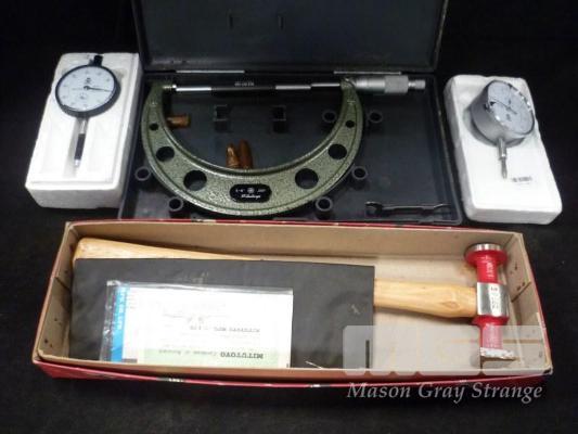 BOXED HAMMER, MICROMETE & 2 x DIAL INDICATOR HEADS