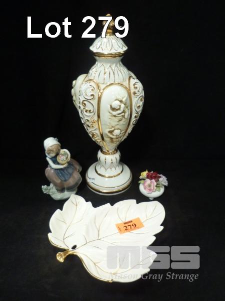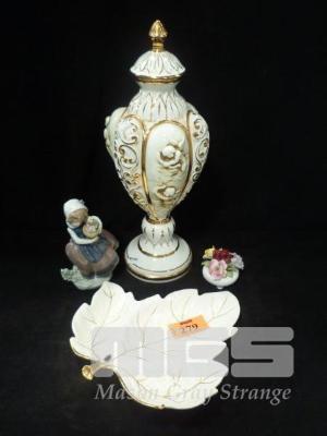 LLADRO FIGURINE, ROYAL DOULTON FLOWERS CARLTONWARE BOWL & KEROMOS URN