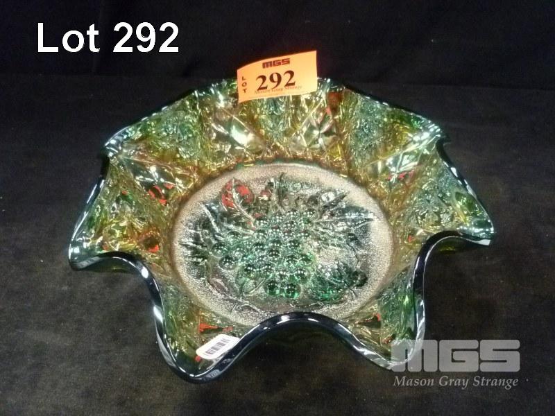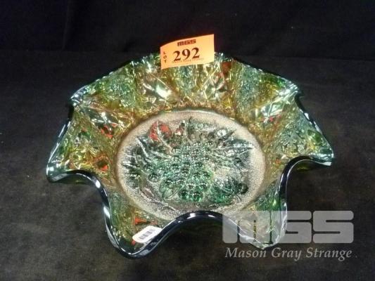EMERALD CARNIVAL GLASS BOWL, GRAPE EMBOSSED