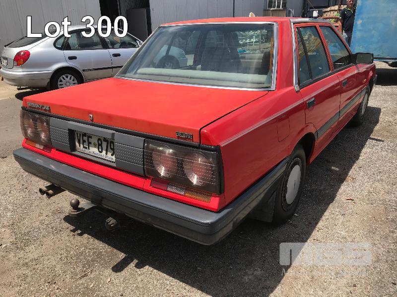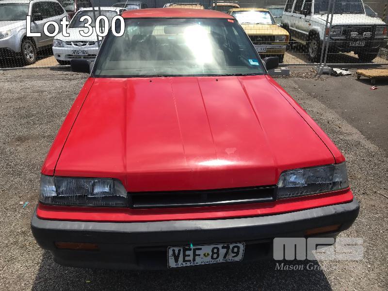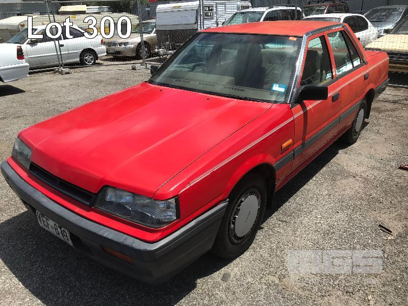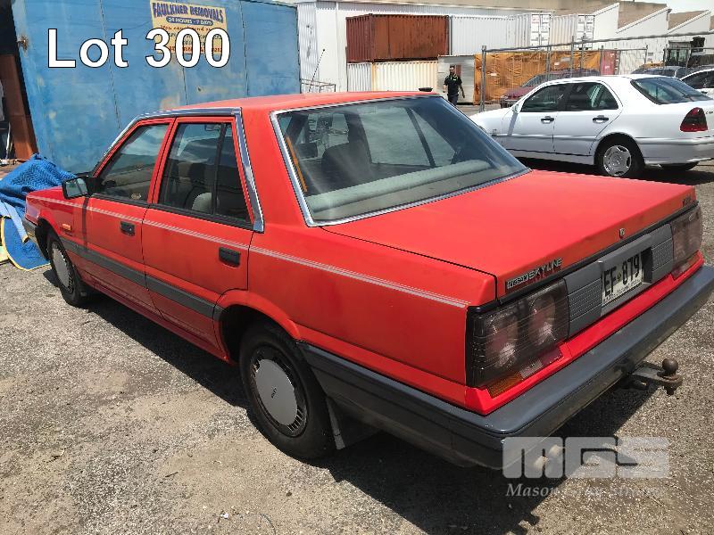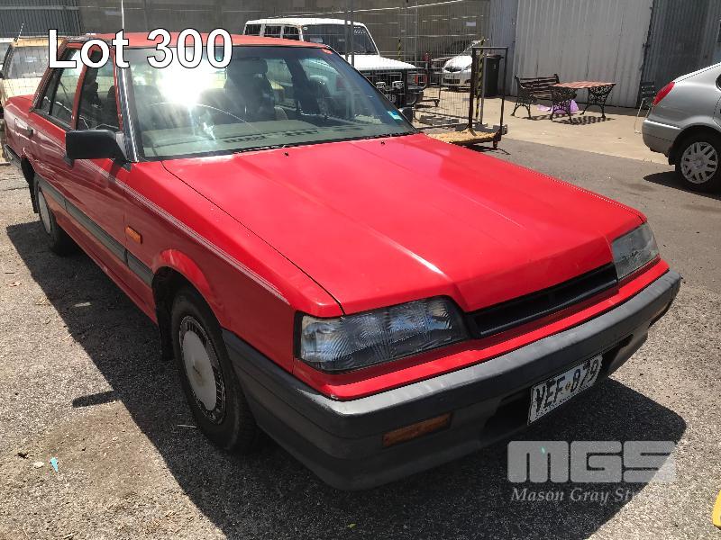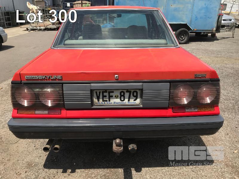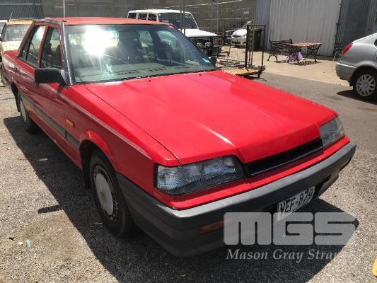 1989 NISSAN SKYLINE EXECUTIVE SEDAN REG: VEF879 (SA) (EXPIRED) VIN: 6F4SCRR31KOJ10353 ENG: RB30174708A ODO: 213,053 R31 6 CYLINDER, 4 SPEED AUTO, PETROL, RED, 4 DOORS, 5 SEAT, AIR CON, CD PLAYER, POWER STEERING, SPARE WHEEL, TOW BAR (WITH PAPERS, WITH 2 KEY/S, NO OWNER'S MANUAL, NO SERVICE BOOKS) CONDITION: BODY - PAINT FADE, SMALL RUST PATCHES, MINOR DENTS INTERIOR - FAIR FOR AGE, VINYL PEELING TO DOORS