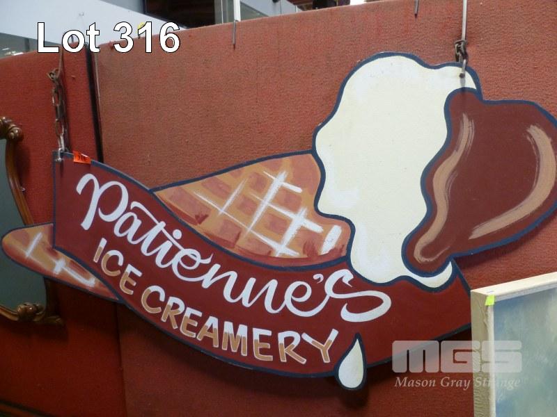 PATIENNES ICECREAM SIGN, DOUBLE SIDED, PAINT TO MDF BOARD