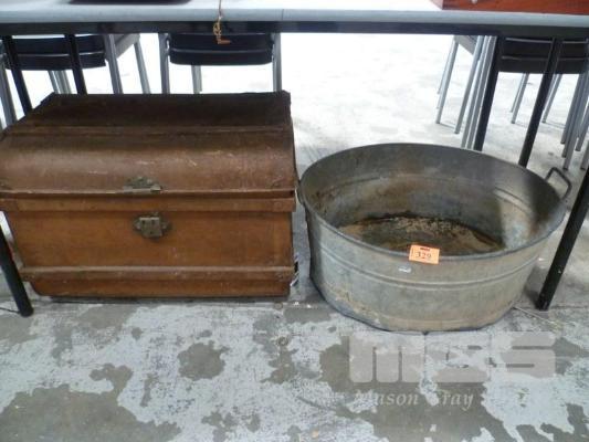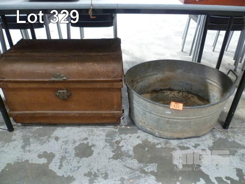 VINTAGE METAL TRUNK & GALVANIZED LAUNDRY TUB