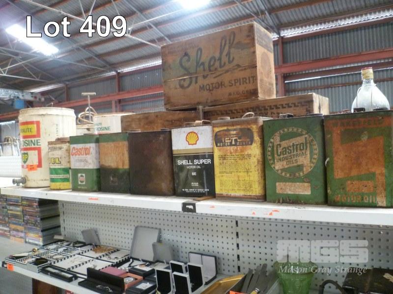 ASSORTED PETRONALIA TINS INCLUDING BP, CASTROL, SHELL, POPE, ETC