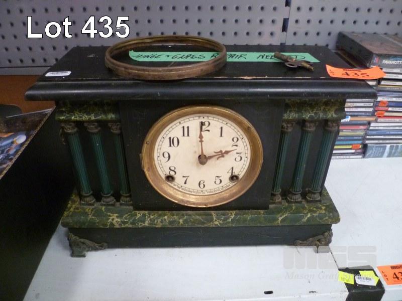 VINTAGE SESSION MANTLE CLOCK, TIMBER, GLASS COVER MISSING, (GLASS CASE SURROUND REQUIRES REPAIR)