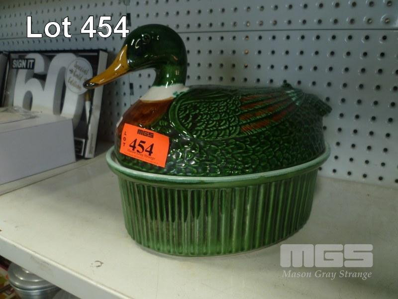 LARGE PORTUGAL MAJOLICA DUCK CASSEROLE