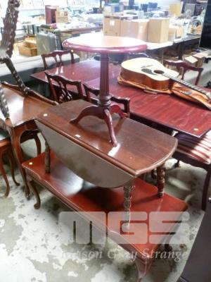 MAHOGANY RECTANGULAR COFFEE TABLE, CABRIOLE LEGS, DROP SIDE ROUND COFFEE TABLE & WINE TABLE