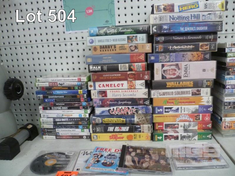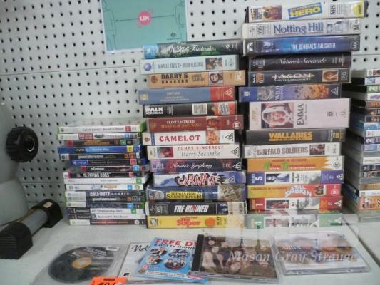 ASSORTED VHS TAPES, XBOX 360 GAMES, PS2 GAMES, CD'S, ETC