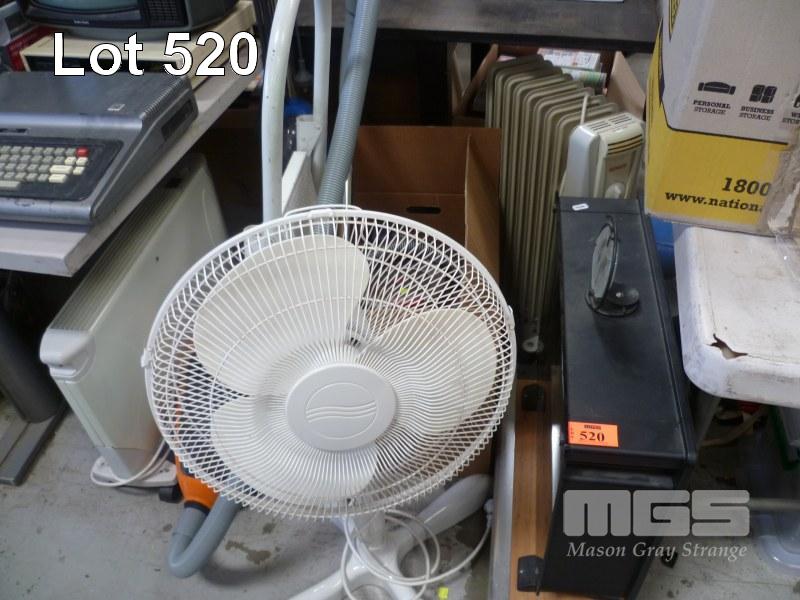 HOOVER & SONAXX VACUUM CLEANERS, ELECTRIC IMITATION LOG FIRE HEATER, COLUMN HEATER, PEDESTAL FAN, STEP LADDER & UPRIGHT SHAMPOOER