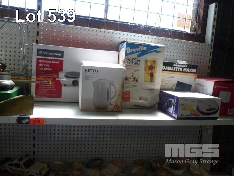 KITCHEN APPLIANCES, DOUBLE HOT PLATE, KETTLE, SUPER BLENDER, SANDWICH MAKER, TOASTER & OMELETTE MAKER