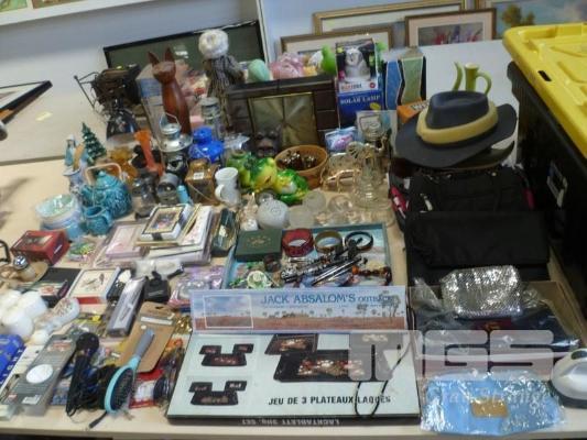 ASSORTED HOMEWARES, CANDLE HOLDERS, HANDBAGS, FELT HATS, TRAYS, ETC, 1 x TABLE