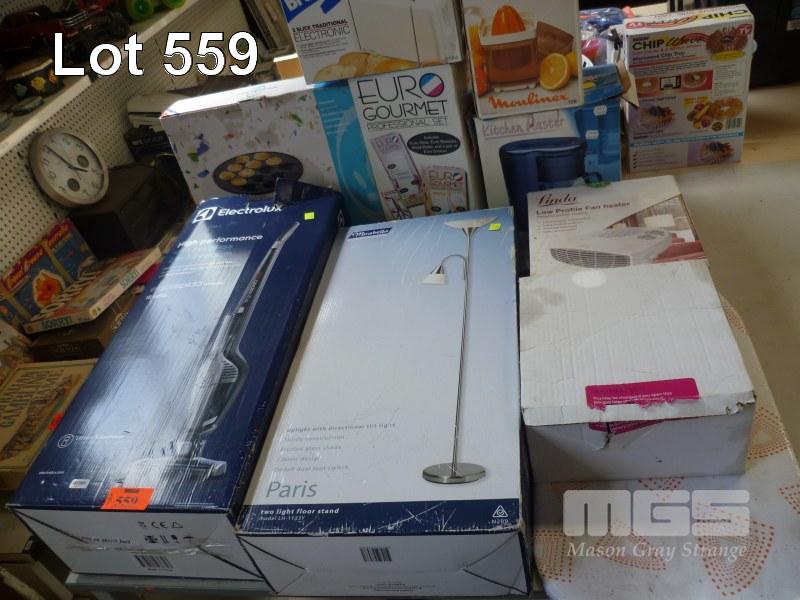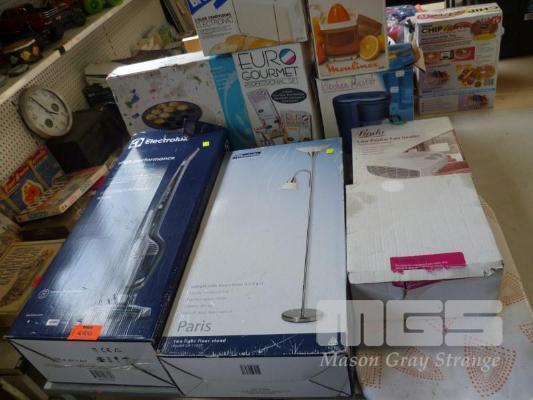 PANCAKE MAKER, TOASTER, COFFEE MAKER, CORDLESS VAC, STANDARD LAMP, ETC